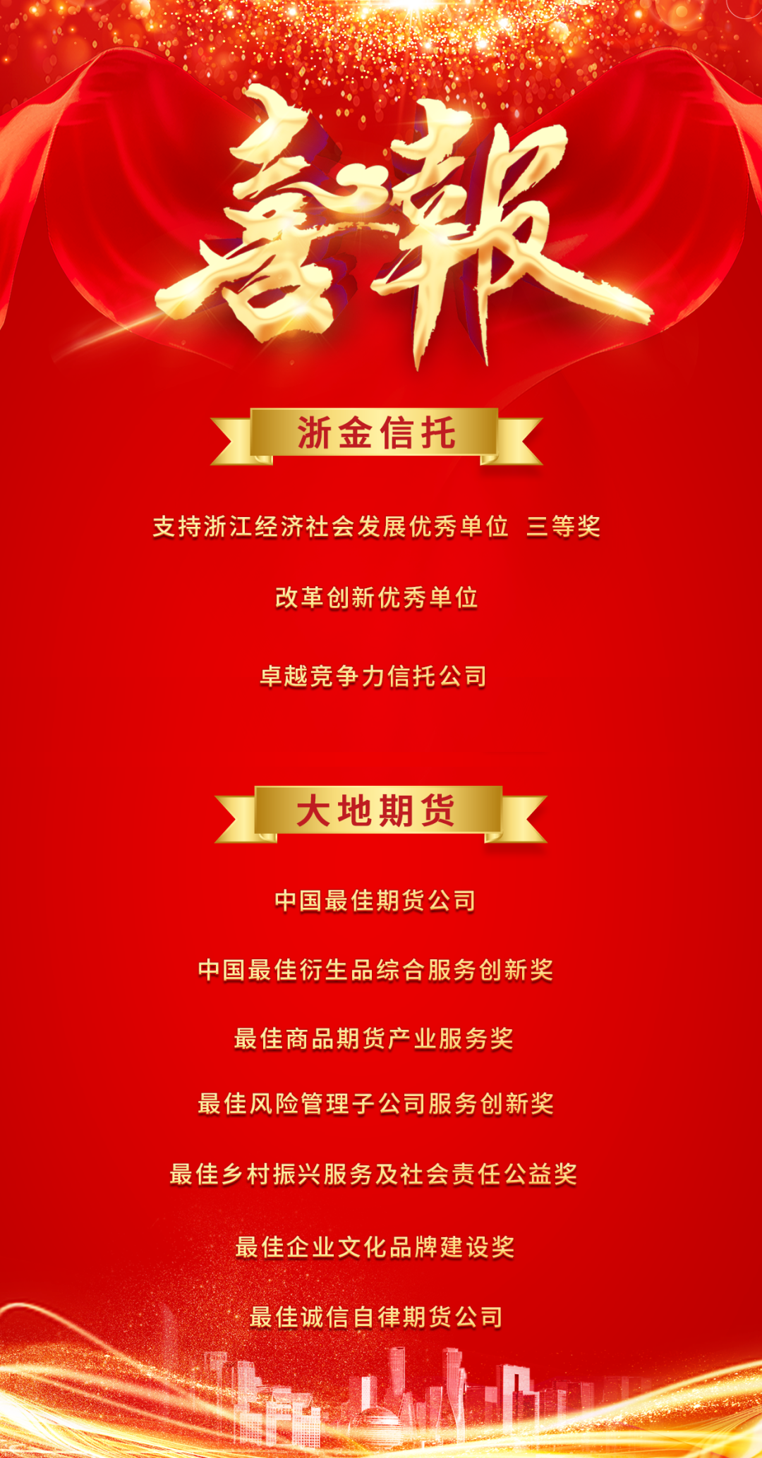 日前,浙江東方旗下浙金信托、大地期貨憑借在專(zhuān)業(yè)領(lǐng)域和社會(huì)責(zé)任等方面的積極成效,榮獲省內(nèi)、業(yè)內(nèi)多項(xiàng)重量級(jí)的獎(jiǎng)項(xiàng)。