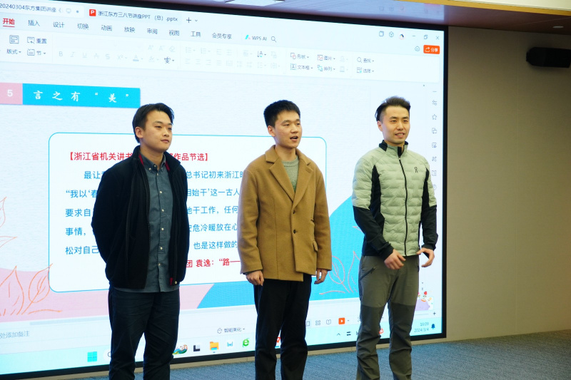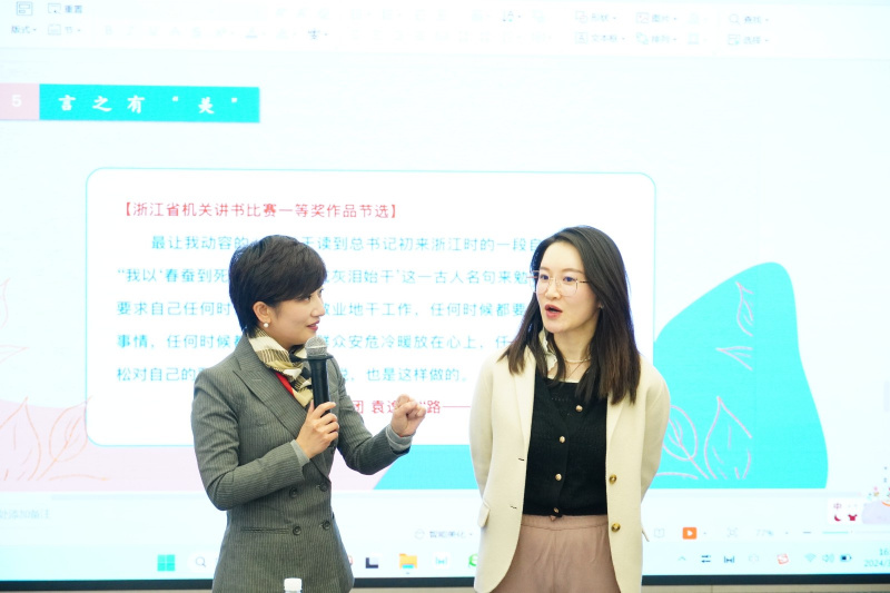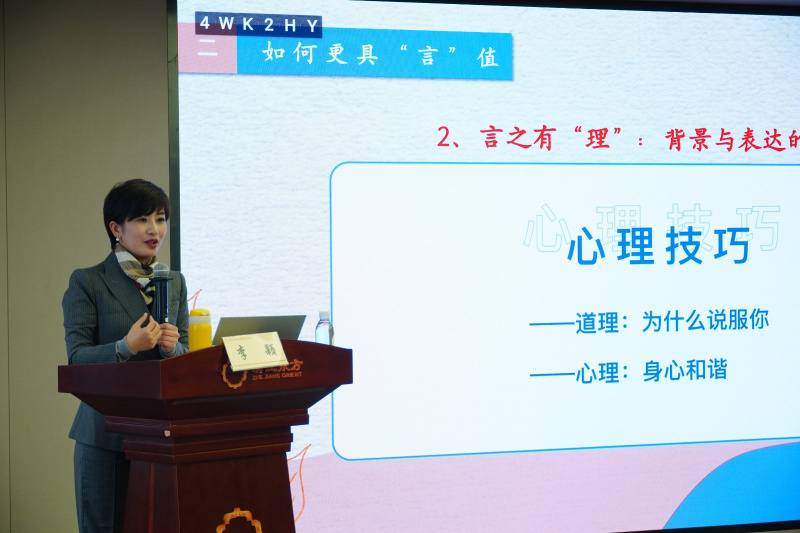 在魅力演說表達與技巧講座上,浙江工業(yè)大學播音與主持系教授李穎,就“如何提升女性演說表達技巧”進行現(xiàn)場講授和互動,通過二十大黨代表姜麗娟的《下姜村的新變化》、浙江省微黨課比賽一等獎作品山村支教女老師的《一個都不能少》、省直機關講書大賽特等獎獲得者袁逸的《跟著總書記讀好書》等三篇女性優(yōu)秀演講范例解析,讓現(xiàn)場職工在紅色作品中堅定信仰,從紅色文化汲取奮進力量。交流互動環(huán)節(jié),李穎教授從心理、情感、呼吸、禮儀等方面講授演說誦讀技巧,針對職工現(xiàn)場演說表演,給予點評和指導,讓女性“她”力量更具“言”值。